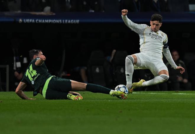 欧冠阶段赛第六轮,皇马坐镇伯纳乌迎战曼城,由于姆巴佩赛前突感肌肉不适,阿隆索排出了一套4-4-2的首发,算是对近来已呈失控之势的更衣室的一种妥协。
